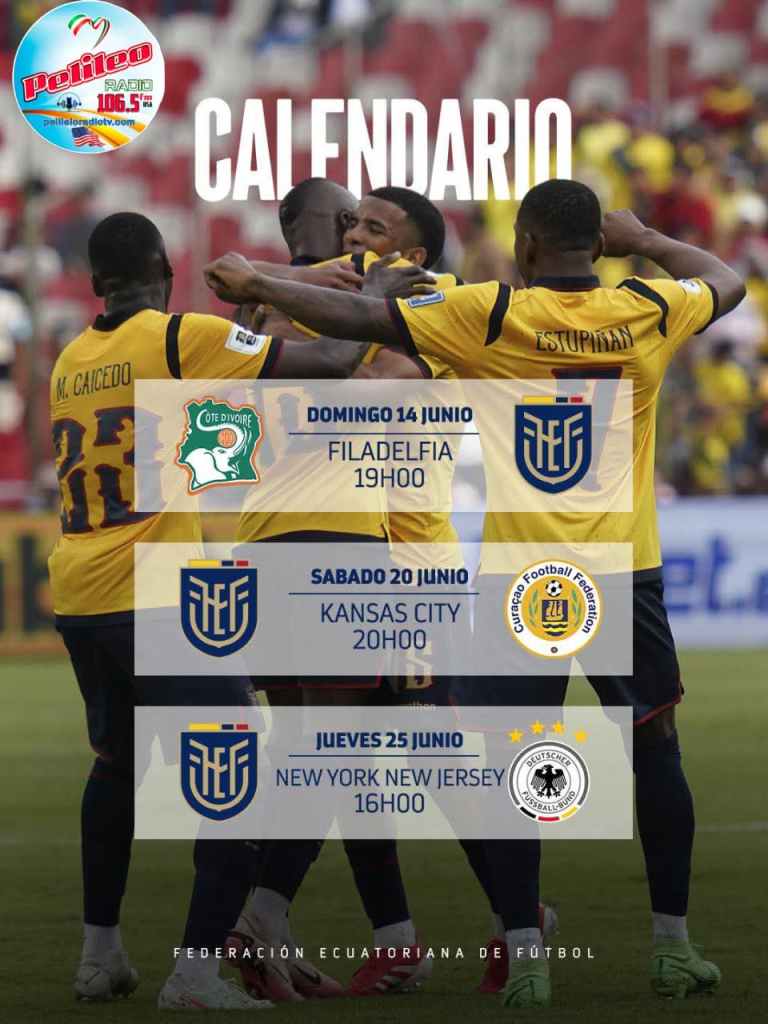 Jueves, 25 de junio 2026 16:00 – Ecuador vs Alemania (15:00 de Ecuador)– Grupo E – New York New Jersey Stadium .